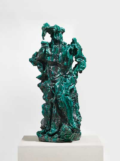 Indeed, Fontana’s first foray into ‘Lo Spazialisme’, the art movement he founded, was a ceramic cube, Ceramica spaziale (1949), exhibited here. This was his annus mirabilis. That same year he also created L’Ambiente spaziale a luce nera, a darkened room in which papier mâché shapes, painted in fluorescent colours, are suspended and lit from above – Fontana’s first environment.