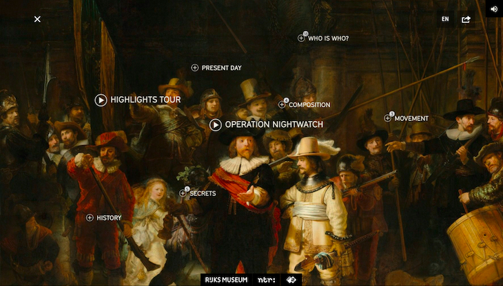 Screenshot showing interactive materials for Rembrandt’s The Night Watch