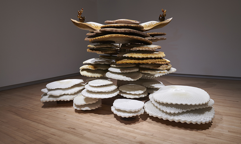 As I wandered around ‘When Forms Come Alive’ at the Hayward Gallery in London, a burly man sidled up and asked me if I’d like to handle some Mylar. I was beside a Tara Donovan sculpture made from a thin, silvery material that had been curled and clustered into spheres, posed in a great bubbling pile like magnified bacteria. I assumed that the sheets were aluminium and that the sculpture would be cold and jagged to the touch. The invigilator corrected me; it was Mylar (the same light and pliable material from which Andy Warhol’s Silver Clouds were made in 1966). He handed me a sheet.