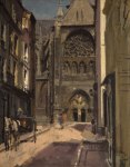 Until he visited Envermeu, Sickert’s chief artistic concern in Dieppe had been its architecture, particularly the churches of St Jacques and St Rémy. The most striking room in the show is a series of pictures he made of them, mostly during his seven-year stay in the town from 1898 to 1905. The centrepiece is a grand painting of St Jacques, another of the works he produced for that unhappy hotelier, M. Mantren (Sickert had hoped the ‘picturesque’ subject would sell). The drawings and oil sketches are the most interesting. In these you can see Sickert’s careful workings-out, as well as more cavalier departures from his own brief: one hot day in around 1900, he abandoned his studio to make a rare plein-air painting of St Jacques in a limited but eye-catching palette of burnt red and greys. He was inspired by Monet’s paintings of Rouen Cathedral, but instead of using the series to investigate the effects of light, Sickert probed his own methods, testing his artistic strength against the churches’ unyielding stone.