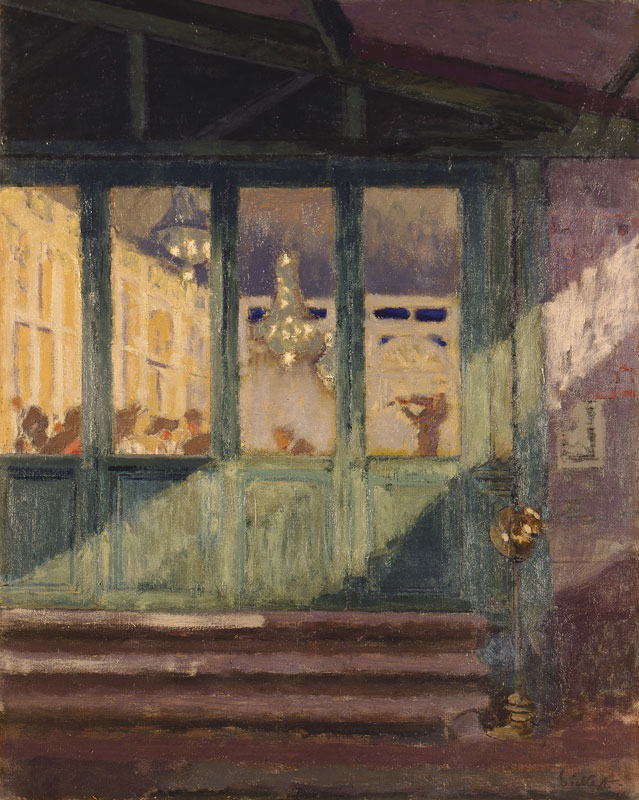 Until then, Sickert had been producing hazily elegant studies in the style of his teacher, Whistler. Degas painted unapologetically modern subjects using surprisingly traditional studio-based methods. You can spot his influence in the brilliant palette of The Red Shop (October Sun) (c. 1888); in the poses of numerous tired revellers; and most obviously in Dieppe Races (c. 1919–20). It is also apparent in Sickert’s prints and drawings – which are rightly given equal billing beside his paintings. It would have been interesting to see Sickert’s work compared to that of the artists he met in Dieppe. But then that would be a very different show.