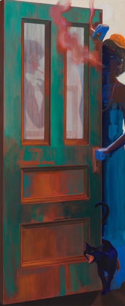 In their former incarnations they were models – actresses, prostitutes and other working women – performing roles marked out for them by painters who paid for their time (and often shared their beds). In Brice’s hands they are permitted the repose, self-determination and creative agency that gender, class and race placed out of reach in their own time. Their cigarettes send licks and curls up the surface of the canvas in a rhythmic pattern. Tendrils spill through half-open doors. In Brice’s world without men, as in Mckinney’s nocturnal interiors, these glowing tips and gauzy emissions point to pleasure, self-reliance and reverie, but also to inspiration. The smoke is more than incidental. A cigarette directs attention. It signals belated enjoyment of the modern bars and nightclubs that were closed off to respectable women of the late 19th century – among them the Impressionist painters Mary Cassatt and Berthe Morisot. These were spaces in which ideas were exchanged, alliances formed and human drama observed, between trails of tobacco smoke.