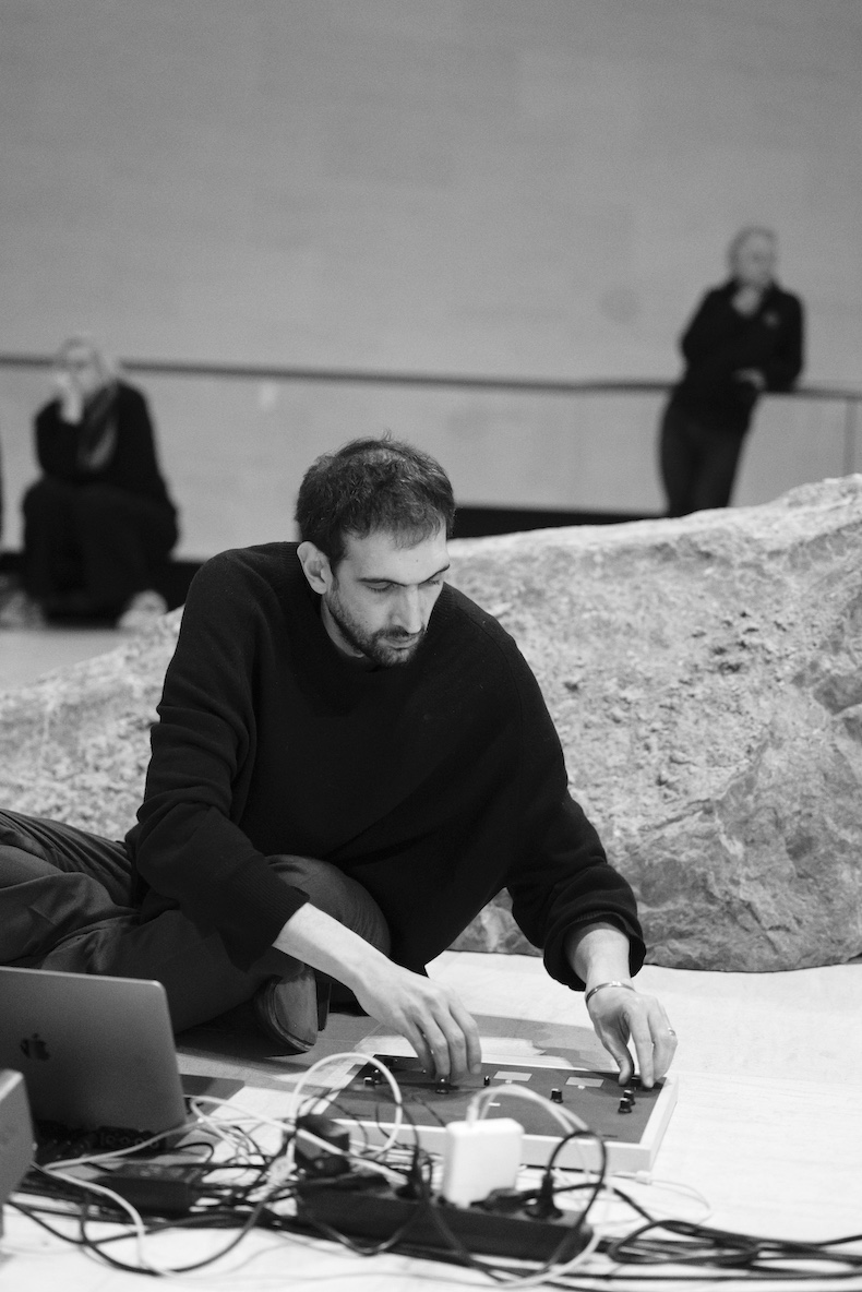 Tarek Atoui performing Waters’ Witness at MUDAM, Luxembourg, in 2022. Photo: © Eike Walkenhorst; © the artist