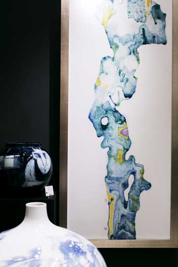 Porfirius’s display of rare, small items, which range from a magnificent natural fan of coral to an intricate, machine-turned wooden box made for the Tudor court, is compact and carefully clustered around the edge of the stand. FitzGerald Fine Arts is exhibiting contemporary Chinese porcelain and ink works, some of which measure over a metre, and has adopted an altogether different approach, partitioning the space to create a narrow snaking corridor. Visitors are obliged to edge past the wall-mounted pieces and standing vessels, whose invitingly smooth surfaces you are permitted to touch.