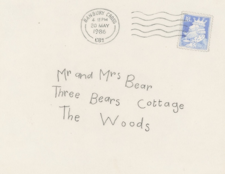 Original artwork for the envelope to Mr and Mrs Bear. © Janet and Allan Ahlberg
