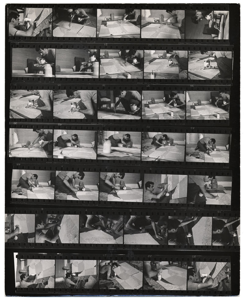 That career began in Milan in the 1930s and is represented here by works from his first solo show at Galleria Il Milione in 1935. These early examples of sculptural abstraction were exhibited in the same year the gallery published Kn, a manifesto for artistic abstraction, by Melotti’s cousin Carlo Belli. The geometric purity, if not the interest in colour, of Belli’s text – called ‘the gospel of abstract art’ by Wassily Kandinsky – is apparent in the rigour and lyricism of Melotti’s lines. The apparent solidity of the plaster works known as Sculpture No. 11 (1934) and Sculpture No. 12 (1934/1968) belies their fragility, and the addition of curving staves of wire to the geometric plaster forms of Sculpture No. 24 (1935/1968) anticipates his works of the 1960s.