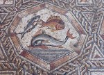 It’s a very rich, late Roman work, composed of rectangular concentric frames. Inside are nine medallions, octagonal in shape: five of these depict animals fighting or hunting; two depict fish, showing species from the Mediterranean Sea; and two others reveal birds – doves and partridges beside objects, including an amphora and a basket of flowers. Based on the ceramic shards found during the excavation, and on numismatic – as well as artistic – grounds, we have dated it to the 3rd century. This mosaic is the best of the Roman tradition.
