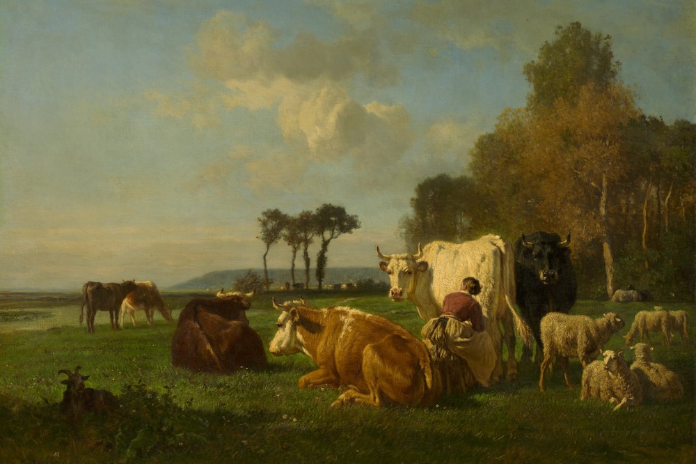 As your roving correspondent has already discussed at some length, there is much about BBC’s The Traitors to tickle the art-lover’s fancy. But a recent episode, which aired last Saturday, was its most arty yet. The challenge, which contestants must complete in order to add money to the prize pot, went like this: one half of the team was shown a series of empty picture frames with short descriptions of scenes, which they then had to act out as best they could. The other group, stationed in the unspeakably messy storage room where the castle’s artworks were kept, would be sent a photo of the contestants acting out the scene and would have to rummage around the room to find the corresponding painting. ‘A beguiling young milkmaid milks a sombre highland cow, whilst the other two cattle rest patiently in the meadow’ was one description, and it pointed to a pastoral scene by Constant Troyon (1810–65). The version shown in the episode has some key details changed from the actual painting by Troyon; whether the show’s producers may have enlisted the help of AI to alter the works, Rakewell would not care to speculate.