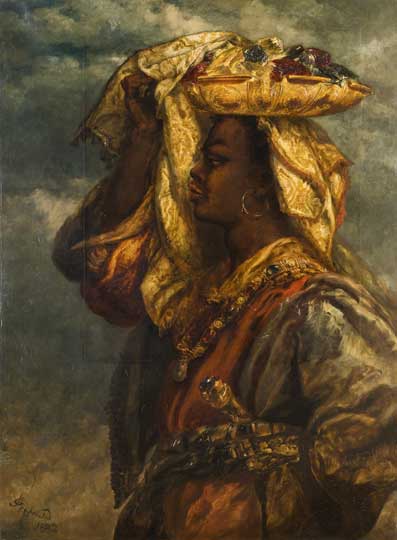 The Guildhall’s approach to its new thematic hang is lightly instructive about Victorian cultural history. There is wall text accompanying each section, but connections between works of art are only really revealed by close and patient attention. The hang is designed to encourage new conversations about Victorian life, whether sparked by James Tissot’s soap opera-like compositions of social embarrassment and cross-class flirtation, or by images of empire, race, and religion. The most exciting aspect of this new format is just how much of the display will be a fresh feast for the eyes, even for the most seasoned of Victorian art lovers. An astounding 70 per cent of works shown in the revitalised hang of the Victorian Gallery were previously in storage (the entire City of London Corporation collection numbers some 4,500 works): this material hasn’t been exhibited here before, and most of the paintings have never been loaned to other exhibitions. It includes some of the best of Victorian artistic technique, representations of social values (and critique of them), and sheer eccentricity. Go for a glimpse of Frederic Leighton’s classic meditation on sound and vision, The Music Lesson (1877); linger with John Gilbert’s A Girl with Fruit (1882) and John Byam Liston Shaw’s The Blessed Damozel (1895), a hypnotic response to Rossetti’s poem.